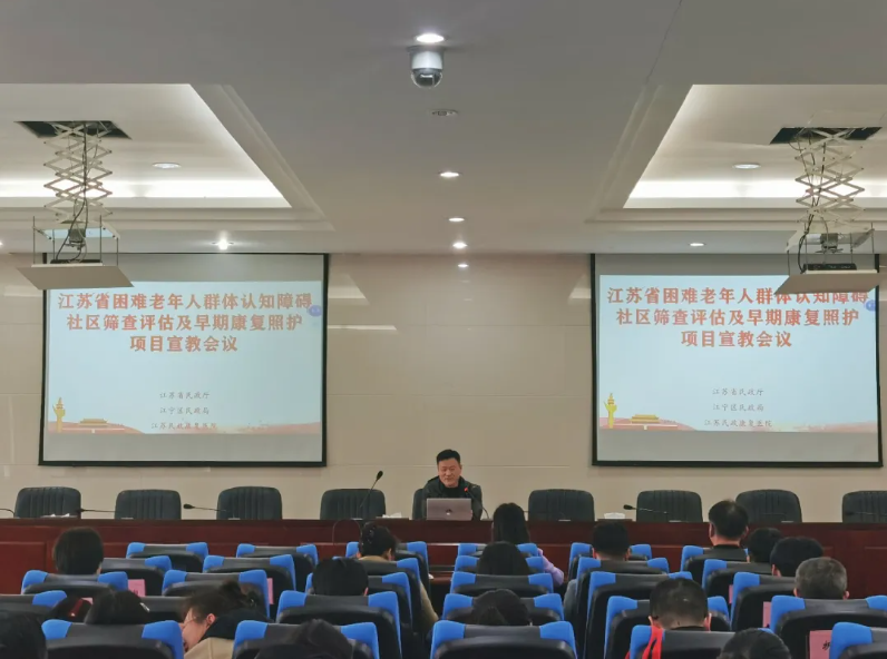 3月14、15日,江苏省困难老年人群体认知障碍社区筛查评估及早期康复照护项目组在江宁区召开认知筛查项目宣传动员会。江苏民政康复医院护理部王元红主任、医务科李翔科长、江宁区民政局养老科罗景辉科长、彭立志主任、科普专家李小州及项目组成员参加,会议对江宁区十个街道及辖区内民政专员和服务代表进行科普和项目介绍。