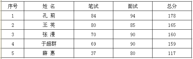 民康医院2013年5月公开招聘成绩(护理)