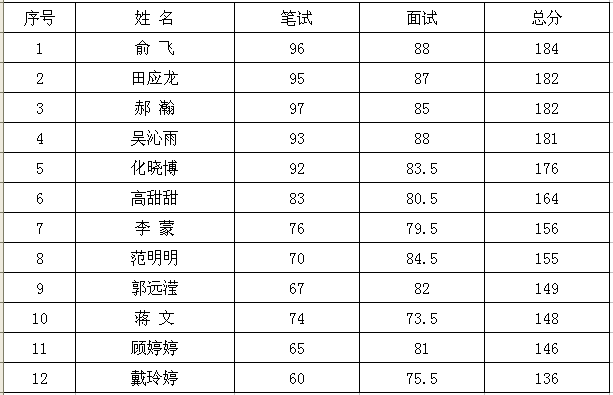 民康医院2013年5月公开招聘成绩(康复治疗师)
