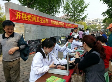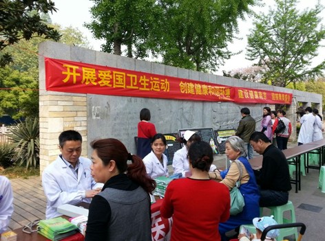 4月9日早上,我院与南京市第二医院、鼓楼区疾控中心、南医大二附院等医疗单位参加了挹江门街道组织的“开展爱国卫生运动 创建健康和谐环境”的公益诊疗活动。各院的医务人员在铁路北街市民广场为广大居民提供免费健康咨询、免费测血压,并向社区居民宣传一些实用的入春传染病防治小常识。此次活动受到了社区居民的一致好评。