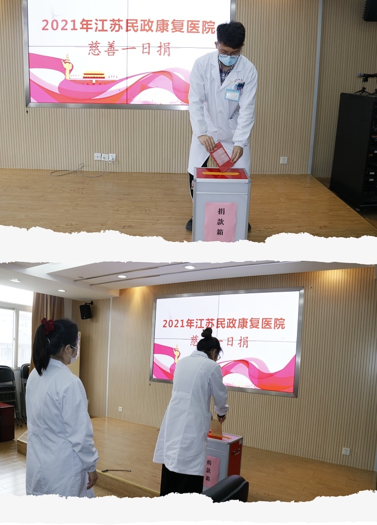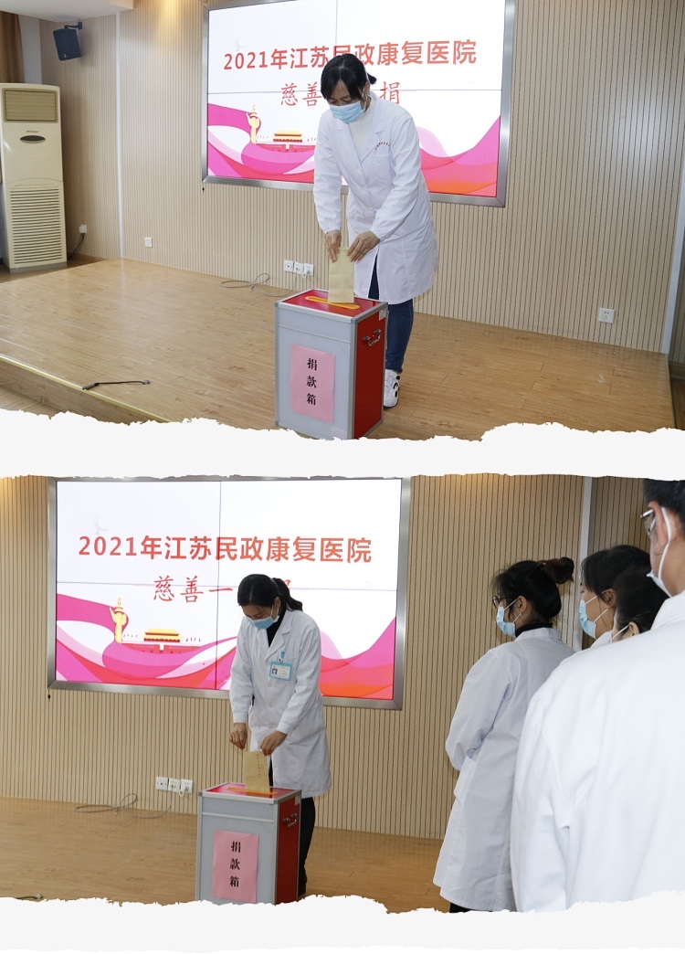 为贯彻落实省委宣传部、省民政厅、省卫健委等部门《关于开展2021年省级机关“慈善一日捐”活动的通知》精神,倡导扶贫济困、乐善好施的良好道德风尚,江苏民政康复医院于12月16日开展了“慈善一日捐”活动。