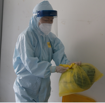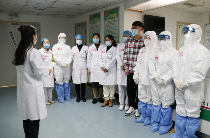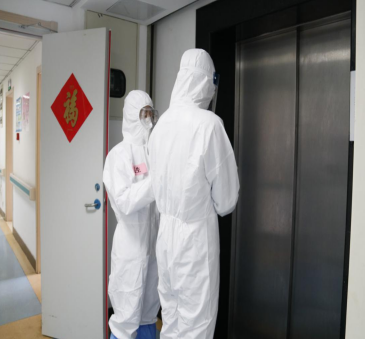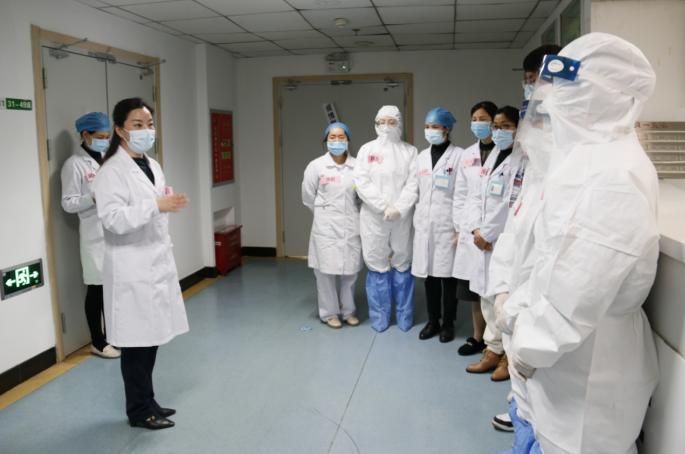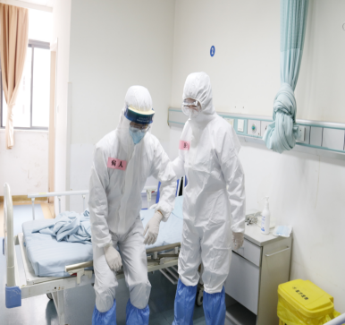 感控科指导科室将过渡病房周围封闭管理,按既定路线转运病人,指导人员后续对物表、空气进行消毒等工作。