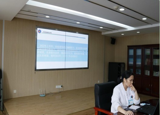 沙莎副院长作医院上半年工作报告。她指出,过去的半年,医院各项经济指标稳中有进,党风廉政建设和意识形态工作全面加强,医疗护理质量和服务能力进一步提升,医院严格落实疫情防控工作,大力开展新技术新项目,积极宣传医保基金政策,稳步推进医院浦口院区建设,各项工作平稳有序运行。